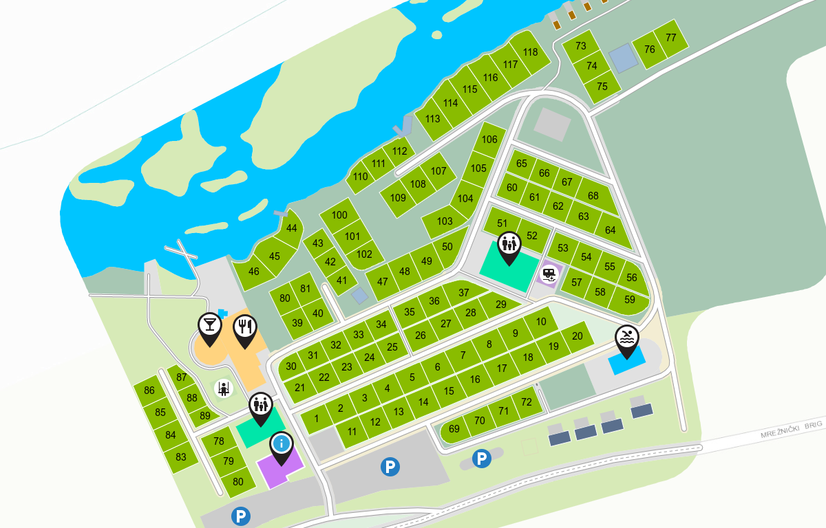 Camp is located on one of the cleanest and most beautiful Croatian rivers, river Mrežnica. Located 50 km south from Zagreb, and only 10 km from Karlovac. The easiest way to arrive to the camp is exit from the highway in Karlovac, and through the town of Duga Resa where is required to turn towards Senj. Route to the camp is marked by traffic signs and signposts from city of Karlovac.